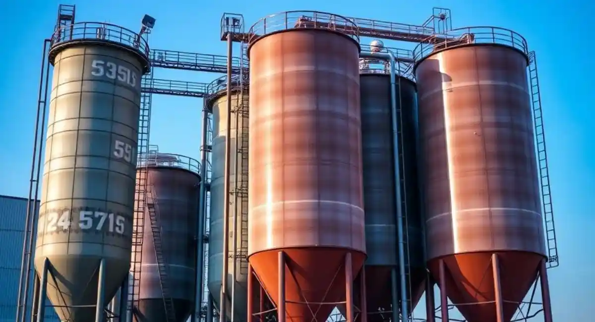 Silos metálicos industriais para armazenamento seguro de grãos e materiais, com alta resistência mecânica e durabilidade superior.